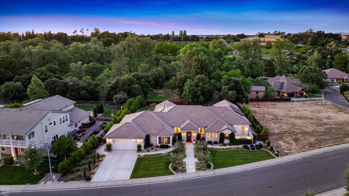 Casual elegance defines this luxury home in Oakdale's Hillsborough Estates neighborhood. Approximately 3900 square feet with 3 bedrooms, 2.5 baths, an oversized great room and separate formal dining room, this gorgeous home features quality craftsmanship and thoughtfully-curated details throughout. The primary suite includes 12 foot ceilings, a private patio, a dressing area with two closets and a bathroom with dual vanities, a soaking tub and a double shower. Several sets of 8 foot tall French doors offer great views of the outdoor amenities and majestic oak trees. A pool, firepit, outdoor kitchen and plenty of patio space provide great options for entertaining family and friends. The kitchen is a chef's dream complete with double ovens and dishwashers, a 5x11 foot island with slab quartz countertop and a farm sink, a microwave, warming drawer, built-in refrigerator, a gas cooktop and a spacious walk-in pantry complete with more prep and storage space plus room for another refrigerator or freezer. An attractive fireplace highlights one wall of the expansive great room. The large dining room includes open beam ceilings. This magnificent property provides a serene setting, timeless charm + quiet luxury. Just minutes to Oakdale Golf & Country Club, it's truly one-of-a-kind!