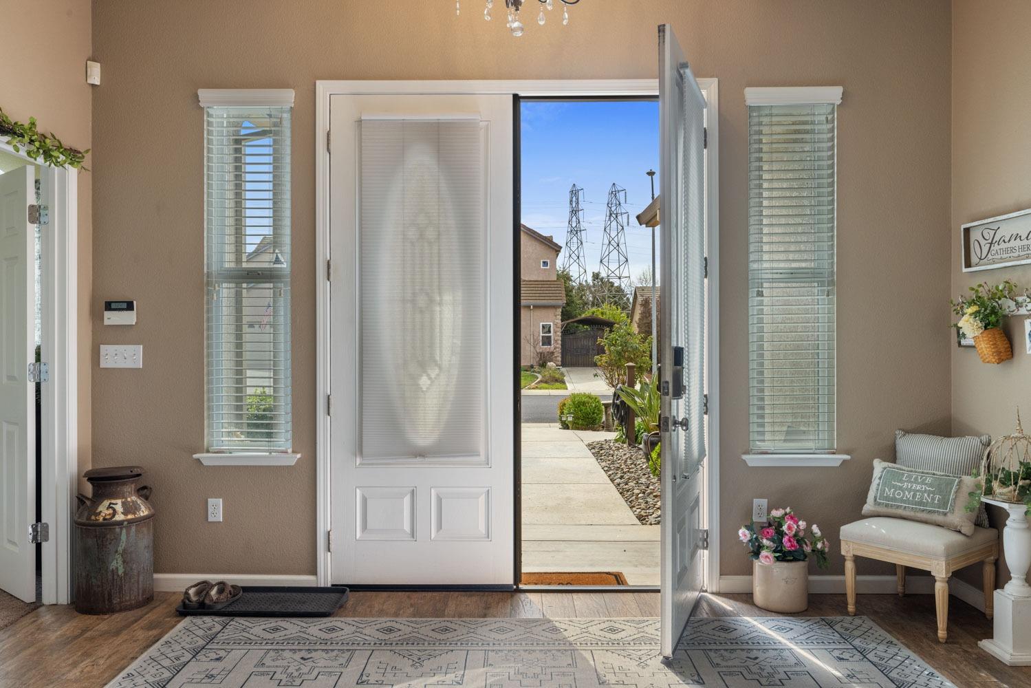 This is a stunningly beautiful Executive style single-family home located in a quiet Northeast Manteca neighborhood. The exterior of the home is well-maintained with lush green lawn, landscaping, and a spacious driveway leading to a three-car garage. The backyard also includes a covered porch perfect for enjoying morning coffee or an evening sunset. When yousee this home you instantly think "Pride of ownership" Upon entering the home, you are greeted with a bright and open floor plan. The large living room is cozy and inviting, centered around a gorgeous fireplace, with many windows allowing for plenty of natural light. The kitchen is modern, stylish and open with a doubleoven, matching dishwasher, granite countertops, and plenty of cabinet space. The dining area is adjacent to the kitc...