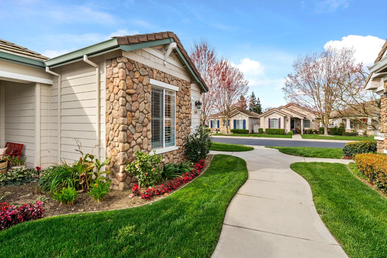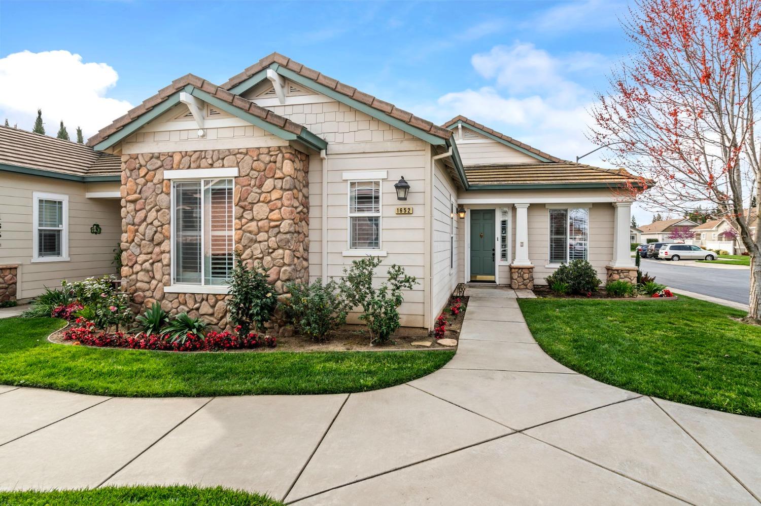 Welcome to 1652 Windy Cove in Ripon's beloved Chasapeake Landing 55+ Community! This 2 bedroom 2 bath is known as the Virginia Model and is 1,501 sq ft. A great floor plan featuring spacious and bright bedrooms, beautifully updated kitchen with slide out racks in cabinetry and granite countertops. Kitchen and hallways also feature updated vinyl flooring. Window shutters throughout the home allowing for privacy and natural night. Retractable Awning over private patio with plumbed drip watering system for your own little garden. Front yard has raised flower bed that is blooming. Enjoy the common area amenities such as private clubhouse including heated pool and spa, resident groups and activities like Bingo, Bunko, Gardening, Social Hours, and Potlucks just to name a few.