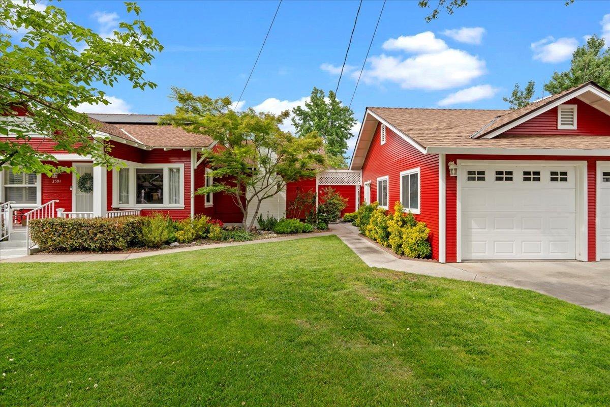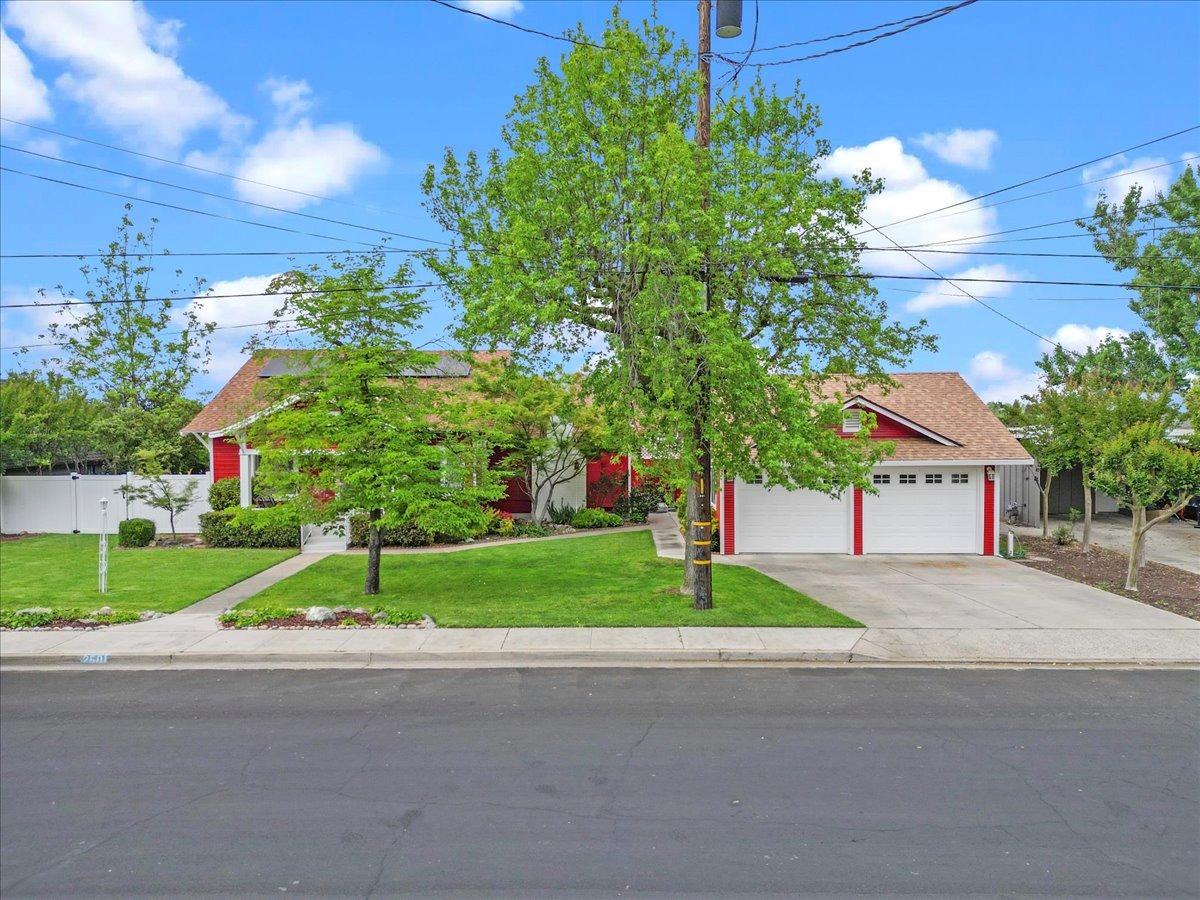 Breathtaking views, timeless architecture & modern renovations & in one of Riverbank's most coveted neighborhoods! The curb appeal is alluring and offers an ode to the 1940's & inside you will be pleased to find a luxury remodeled home. Refinished original hardwood floors sprawl through the formal dining room and lead down the hallway to the two well-lit bedrooms divided by a full bathroom. The primary bedroom is a private retreat with serene views of the foothills, orchards in the distance and gorgeous trees offering a one of a kind view. The en-suite bathroom is spa like with a sunken tub and glass shower stall. A walk in closet and partial basement allow for ample storage. The kitchen has been thoughtfully renovated with granite, new appliances, new cabinets and a large island/ dinin...