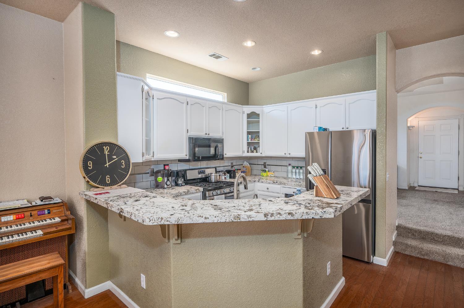 Welcome to Donovan Way where comfort, character, and convenience meet! Tucked on a desirable corner lot near CSU Stanislaus and Medeiros Elementary, this lovingly maintained single-story home invites you in with its open and airy feel. Step inside and you'll be greeted by soaring ceilings, warm natural light, and a thoughtful layout perfect for both daily living and entertaining. The heart of the home features a spacious updated kitchen with granite countertops and a gas range ideal for home chefs and family gatherings alike. Enjoy both a cozy family room and a separate living area with a built-in bar, offering flexible spaces to relax, host, or create the ultimate in your home office! Energy-efficient SOLAR THAT WILL BE PAID OFF keeps utility costs low and comfort high year-round. Outs...