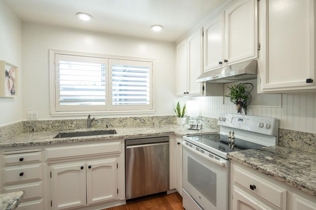 Stunning Sun & Shadows Condo! This updated condo is right across the street from Stanislaus State College and has the floor plan you have been looking for! Granite counters, farm sink, plantation shutters, recessed lighting, stainless appliances that are all included in the sale and ample cabinets for storage make this kitchen a delight to cook in. Lovingly maintained cuddle up in your spacious living room to your cozy fireplace on a stormy spring day and when May flowers are blooming enjoy one of the few units to have your very own private side yard with shady pergola and convenient exit gate for easy access to head to your classes on campus. Privacy abounds with each bedroom boasting their own bathrooms, adorable downstairs bath, detached 2 car garage and upstairs laundry where the wa...